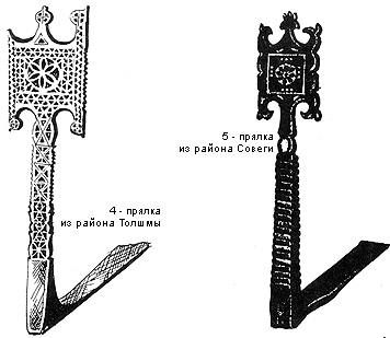 Прялки Толшмы. В данный раздел мы относим прялки, сделанные мастерами Верхне-Толшменского сельсовета. В классификации А. А. Бобринского прялок Толшмы нет, они выделены в каталоге О. В. Кругловой.