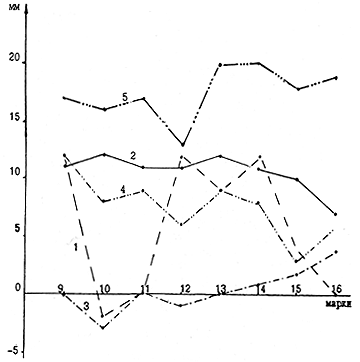 Рис. 3. Вертикальные подвижки стен Успенского собора