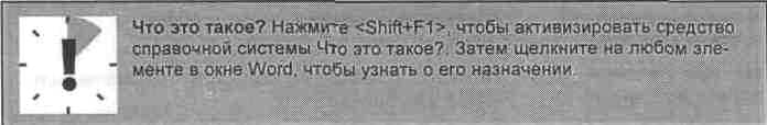 При использовании панелей инструментов вы просто щелкаете мышью на нужной кнопке. На каждой кнопке есть картинка, которая поможет вам понять функцию кнопки. Можно вывести название этой функции, установив указатель мыши на кнопке и подождав несколько секунд. Word выведет описание функции рядом с кнопкой.