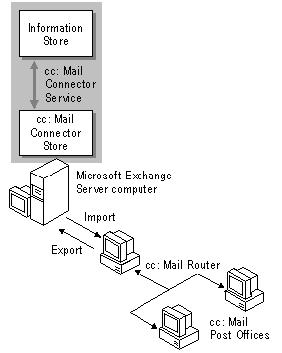 Для подключения к почтовому пространству Lotus cc:Mail применяется cc:Mail Connector. Поддерживается формат почтовых отделений DB6 и DB8. Для организации обмена сообщениями используются средства экспорта и импорта, входящие в состав поставки cc:Mail. При этом эмулируется работа программы cc:Mail Router. Со стороны пользователей cc:Mail каждая площадка Exchange представляется отдельным почтовым отделением. Для балансировки нагрузки коннекторы могут быть установлены на нескольких серверах площадки, однако с одним почтовым отделением не может работать более одного сервера.
