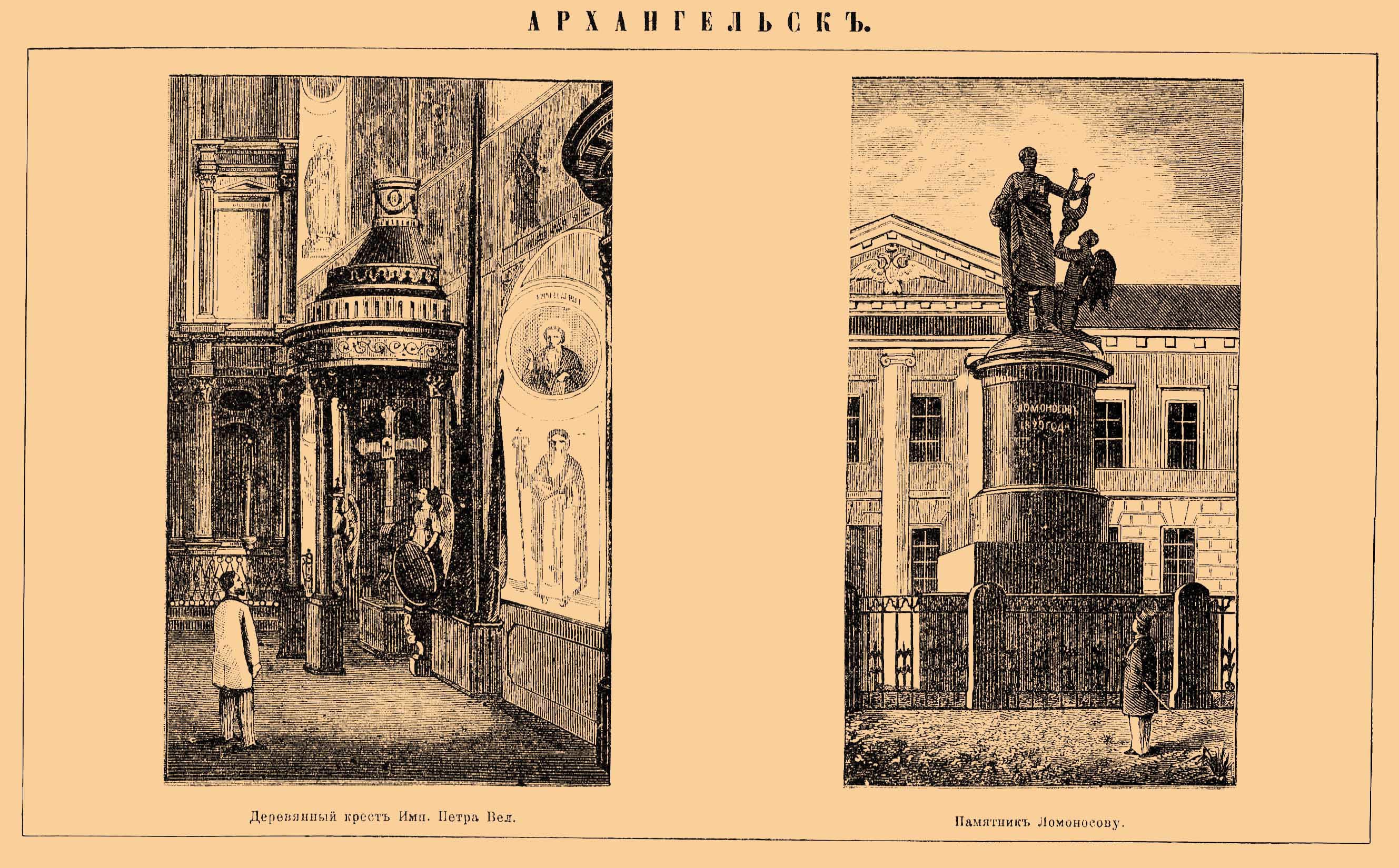 АРХАНГЕЛЬСК. Деревянный крест имп. Петра Вел. Памятник Ломоносову.