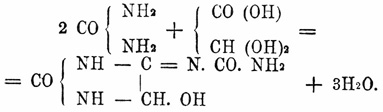 остатками водорода в двух частицах мочевины. Так, напр., образование алантоина