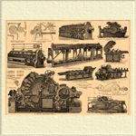 1. Пильная зерноочистительная машина (пильный джин). 2. Ножевая зерноочистительная машина (ножевой джин). 3. Выколачивающая волк-машина. 4. Щипальная машина (опенер). 5. Трепальная машина прежней конструкции. 7. Действие бил. 6. То же, что № 5 современного типа. 8. Расчесывание на кордах. 9. Снимание с одной карды на другую. 10. Смешанная кард-машина (микст). 11. Кард-машина со сляпками более распространенного и новейшего типа, чем №10. 12. Ленточная вытяжная машина. 13. Банкаброш. 14. Ватермашина. 15. Сельфактор (Мюль). 16. Початок пряжи с мюль-машины.