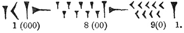 сочетаниях. Один клин означал 1, два клина 2 и т. д. до 10, которое выражалось