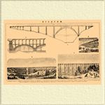 ВИАДУКИ. 1. Железный виадук Гараби в департаменте Канталь во Франции. — 2. Деревянный виадук временного характера. — 3. Каменный виадук на мосте через р. Сену в Париже (продольный разрез). — 4. Каменный многоэтажный виадук в Гельштале. — 5. Железный американский виадук с малыми пролетами.