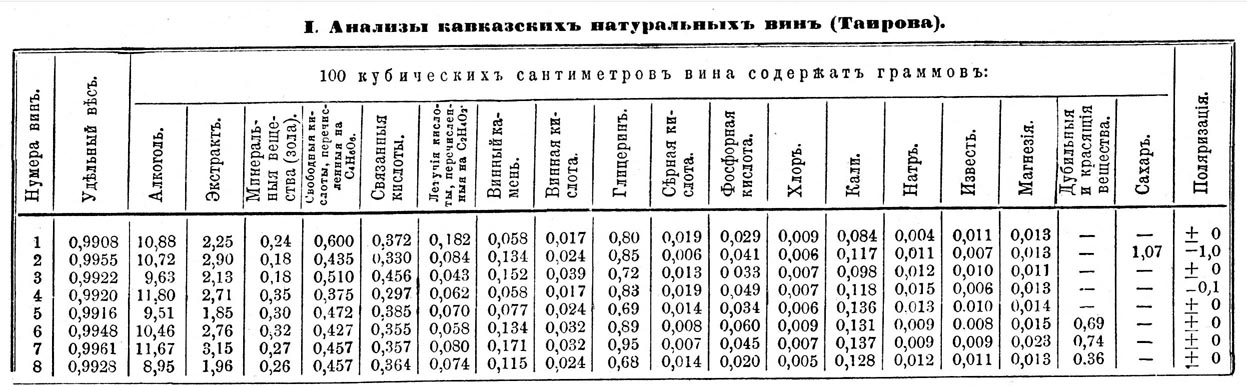 Число произведенных мной анализов слишком невелико, чтобы сказать что-либо определенное о наших винах вообще.