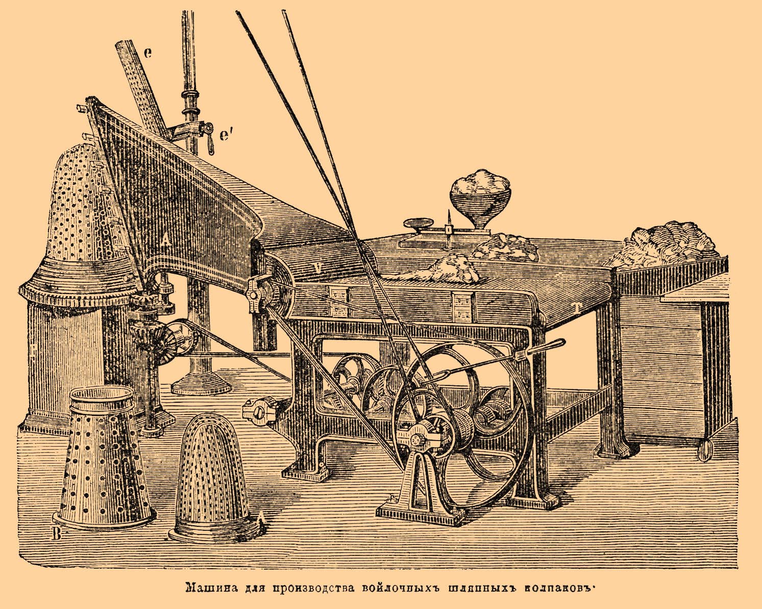 Машина для производства войлочных шляпных колпаков.