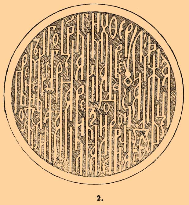 Сложная В. представляет развитие простой; русская письменность XIV в. отличается распространением вязи такого типа. На рис. 2-м изображена одна из 4-х надписей на ставном подсвечнике, у раки св. митрополита Ионы (в Успенском соборе, в Москве), писанная такою вязью: "повелением великого государя царя Михаила Феодоровича всея Руси Самодержца".