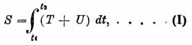 Предположив, что L выражена таким образом, возьмем интеграл от Ldt между произвольными пределами: нижним t1 и верхним t2; полученный интеграл, который обозначим через S: