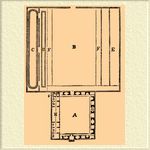 Выдающиеся греческие философы и ученые, сохранившие до глубокой старости свежесть ума, как Софокл, Сократ, Ликон, — по свидетельству историков, всегда настойчиво занимались Г., а Пифагор и Платон выступали даже на олимпийских играх. Результатом такого отношения к Г. было то, что греки отличались от всех других народов красотой форм, свободным видом, стройными движениями, физической силой. Г. занимались с ранней юности в особых заведениях "гимназиях". Прилагаемый план гимназии, составленный по Витрувию, заимствованный у проф. Лесгафта ("Руков. по физич. образованию детей школьного возраста", ч. I, СПб. 1888 г., стр. 9), указывает, насколько учение в Греции было связано с Г. и исполнением разных гигиенических мер. Четырехугольное здание, с двором (А) в середине, с трех сторон было занято помещениями (G) для бесед философов и риторов, отделенными от двора колоннами. Одна же сторона была разбита на несколько отдельных, более мелких помещений для сбора юношей, обмываний, игр и т. д. На середине этого последнего корпуса (Н) помещался большой зад (Ephoebium), продолговатый, с местами для сидений, назначенный для сбора юношей; рядом с ним располагались в одну сторону к входу: corryceum (1) — помещение для некоторых игр греков, в мяч, и здесь же висел на длинной веревке мешок с песком; connisterium (2) для песка, которым, приготовляясь к борьбе, обсыпали тело и растирали руки, чтобы они не скользили; frigida lavatio (3) для обмывания холодной водой; и в другую сторону от Ephoebium: elaeothesium (4) для растирания маслом; frigidarium (5) для охлаждения после купанья; ход (6) для истопника бань; соncamerata sudatio (7) для потения в водяном пару; laconicum (8) для потения в сухом воздухе и calida lavatio (9) для обмывания теплою водою. Позади здания находился двор, также четырехугольный, усаженный деревьями и кустами (В); в одной стороне его были назначены места для борьбы, кулачного боя и вообще гимнастических упражнений (D) и для бега (С), а в другой стороне двора находилась крытая галерея (Е), также для различных упражнений; кнутри от боковых помещений находились некрытые галереи (F), также для занятий Г. Заведовал гимназиями — "гимназиарх", должность очень почетная, помощниками его были: ксистарх и гимнаст (см. ст. Гимназия).