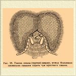 Рис. 10. Голова пчелы (трутня) сверху, между большими сложными глазами сидят три простых глазка.