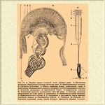 Эмбриональное развитие глаза. Тогда как у беспозвоночных орган зрения развивается на счет эктодермического эпителия поверхности тела, у позвоночных первый зачаток глаза является в виде обособленного участка центральной нервной системы, именно зачатка головного мозга. Центральная нервная система позвоночных образуется в виде отшнуровывающейся от эктодермы трубки, передний отдел которой образует три пары лежащих друг за другом расширенных пузырей, так наз. первичные мозговые пузыри: передний, средний и задний, из них развивается головной мозг (см. рис. 2).