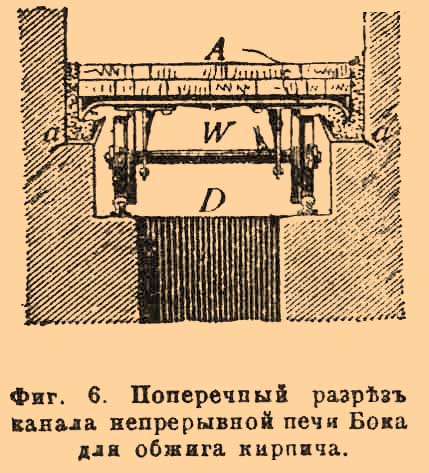 Фиг. 6. Поперечный разрез канала непрерывной печи Бока для обжига кирпича.