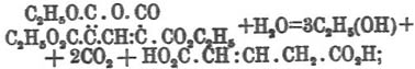 2(H5C2. О 2 С) 2:CNa2 + СНCl 3 + 4Н 2O = 3NaCl + (H5C2.O2C)2:CNa.CH:C:(CO2C2H5)2 + 4Н 2 О = 4NaCl + 2СО 2 + 4С 2H5 (ОH) + НО 2 С.СН:СН.ОН 2.СО 2 Н;