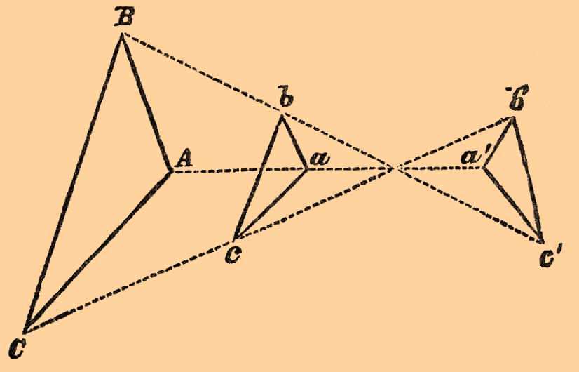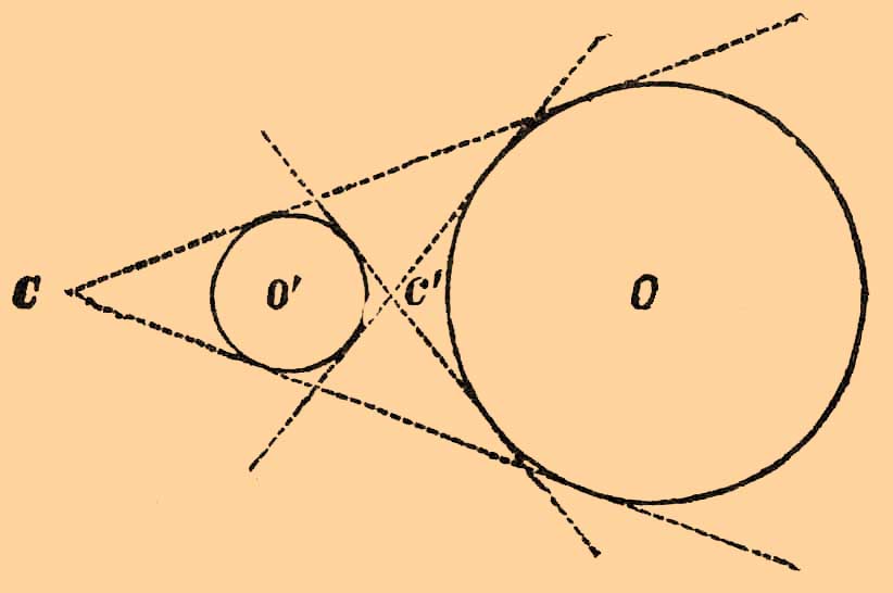 Отсюда видно, что Г. фигуры суть фигуры подобные и подобно расположенные, или же подобные и обратно расположенные. Центр гомологии в этом случае называется центром подобия. Подобие может быть прямое и обратное, смотря по тому, лежат ли соответственные точки фигур по одну или разные стороны центра подобия. Симметричные Г. фигуры могут иметь два центра подобия, прямого и обратного зараз. Напр. всякие два круга имеют центрами подобия точки встречи общих внешних и внутренних касательных.