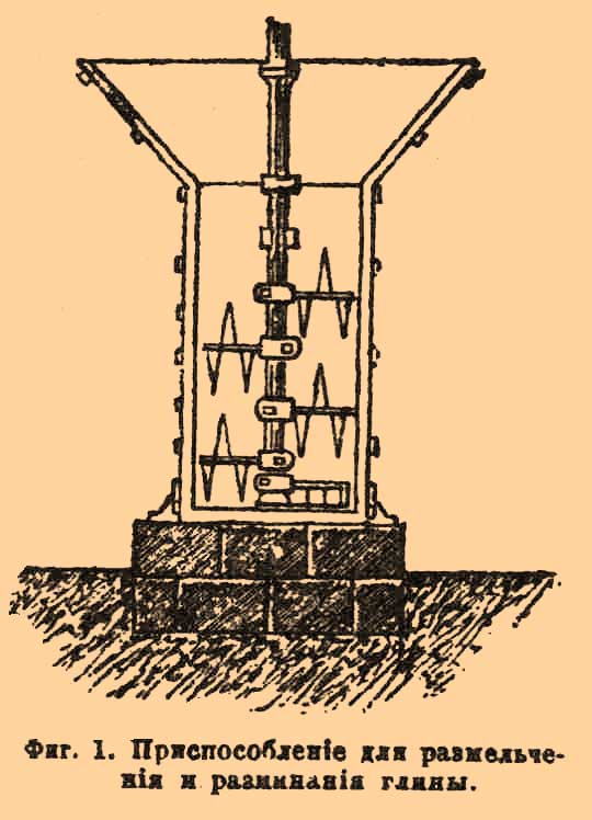 Фиг. 1. Приспособление для размельчения и разминания глины.