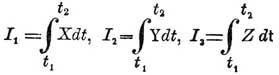 В тех случаях, когда сила изменяет с течением времени и величину, и направление, составляют И. проекций ее X, Y, Z на оси прямоугольных прямолинейных координат, то есть интегралы: