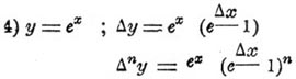 1) у = xn, Δ y = nxn — 1 Δ x + ([n(n — 1)]/2)(xn — 2 Δ x2) + ... + Δ xn
