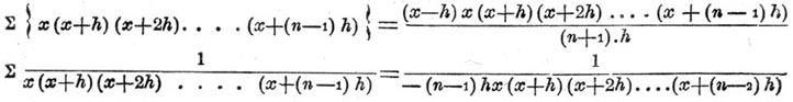 На основании этих двух формул можно суммировать любые целые и дробные, рациональные, функции. Мы не будем останавливаться здесь на суммировании иррациональных алгебраических функций, потому что случаи, в которых конечные интегралы выражаются просто, очень редки. Заметим, что, подобно тому, как и в интегральном И., Σ (1/ х) не может быть выражено в алгебраическом виде. Для функций трансцендентных имеются формулы: