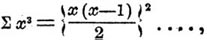 формула, известная еще китайским математикам. Не нужно забывать, что, согласно уравнению (4), под знаком Σ f(x) разумеются выражения f(1), f(2)... f(x — 1). Что касается тождеств (а) и (b), то их выводят для каждого частного случая, из общих разложений для любой целой функции; приличным выбором постоянных А 0, А 1, ... А n всегда можно удовлетворить тождеству:
