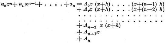 так что каждое следующее х получается из начального и всех предыдущих разностей. Таким же образом существует закон для получения последовательных значений функций у, именно: