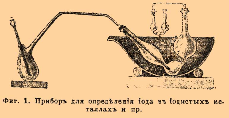 Йод. Определение йода в свободном виде уже ясно из предыдущего; для определения же его в йодистых металлах требуется предварительно выделить его. Это достигается множеством способов, из которых укажем некоторые. Самое простое — нагревать йодистые металлы с солями окиси железа, например