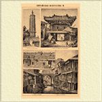 1. Пагода в Тунь-чжоу. 2. Вход в храм в Тянь-цзине. 3. Улица в Пекине. 4. Улица в Кантоне.