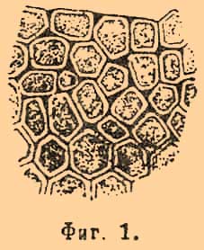 Клейковинный слой зерен окружает внутреннюю мучнистую их часть (Endosperm) и срастается как с ней, так и с оболочками, поверх этого слоя находящимися, так что послойное его отделение представляется невозможным. К. слой состоит из плотно сложившихся клеточек, окруженных толстыми, бесцветными и сильно разбухающими станками. В направлении боковой поверхности зерна клетки эти (фиг. 1) представляются многоугольными, но в разрезе нормальном к поверхности зерна они оказываются или квадратными, или удлиненными, причем бывают расположены в один или в несколько рядов.