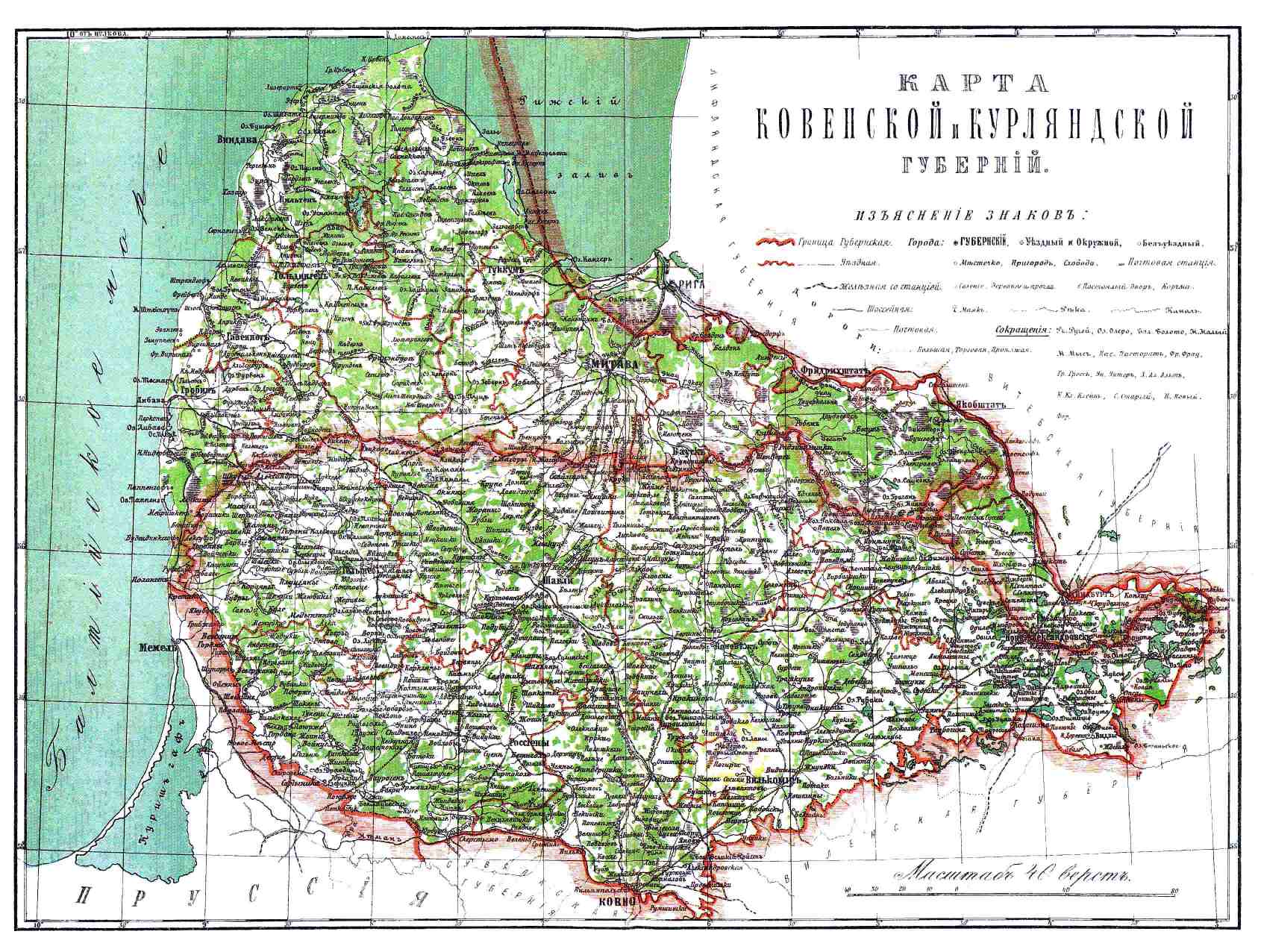 КАРТА КОВЕНСКОЙ и КУРЛЯНДСКОЙ ГУБЕРНИЙ