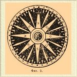 Сама картушка состояла из слюдяного кружка, на который и наклеивался изображенный на фиг. 2 бумажный, с делением на градусы и румбы. В настоящее время такая картушка осталась в ходу на коммерческих судах, а во флоте у нас такая картушка почти вывелась из употребления, и заменена предложенной в 1875 г. И. И. де-Колонгом картушкой с малыми стрелками. Одновременно с этим подобная же картушка устроена и в Англии В. Томсоном (ныне лорд Кельвин).