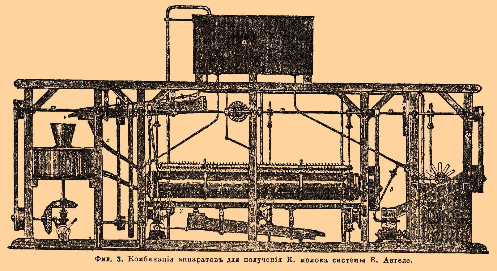 Фиг. 3. Комбинация аппаратов для получения К. молока системы В. Ангеле.