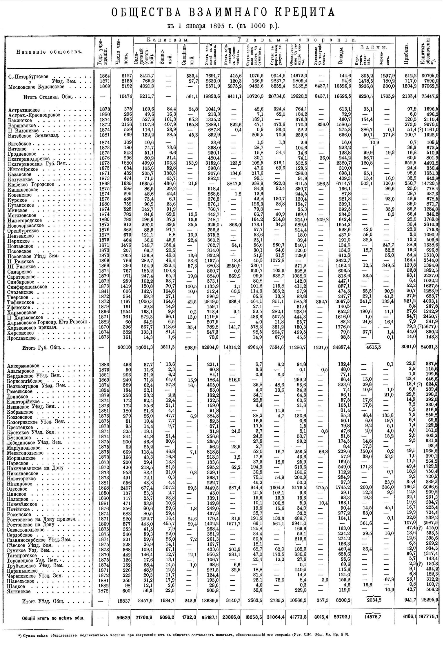 к 1 января 1895 г. (в 1000 руб.).