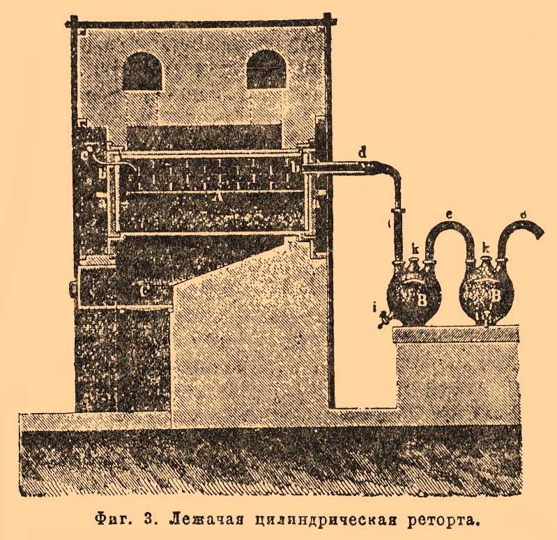 Фиг. 3. Лежачая цилиндрическая реторта.