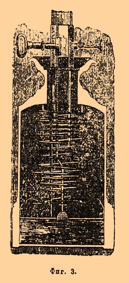 Кенке (Quinqueh) снабдил аргандову Л. цилиндрическим стеклом и через это значительно увеличил количество воздуха, поступающего к пламени. Аргандовы Л. были в употреблении еще до сравнительно недавнего времени, когда уступили более дешевому керосиновому освещению. Несколько лет спустя после этого изобретения Карсель снабдил Л. Кенке часовым механизмом (фиг. 3), приводящим в движение поршень, который доставляет масло из сосуда, помещаемого под горелкой. Вследствие этого устройства пламя карсельской Л. отличается большей яркостью, правильностью горения и постоянством света, так что свет карсельской Л во Франции принят за единицу света.