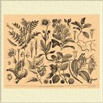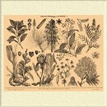 1. Гвоздичное дерево (Caryophyllus aromaticus). 2. Алоэ (Aloe socotrina). 3. Сассапарель (Smilax syphilitica). 4. Александрийский лист (Senna angustifolia). 5. Кардамон (Elletaria cardamomum). 6. Флорентинский касатик (Iris florentina). 7. Ромашка (Matricaria Chamomilla). 8. Куссо (Brayera anthelmintica).
