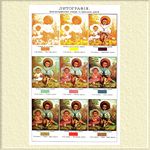 Печатать с камня можно не только черною, но и какою угодно цветною краскою. Эта возможность дала начало особому роду Л., называемому хромолитографиею — искусству производить эстампы многоцветные, в подражание акварельным рисункам и картинам, писанным масляными красками [производство хромолитографических подражаний живописи масляными красками называется также олеографией]. Хромолитография, усовершенствованная французскими, немецкими и английскими техниками, в настоящее время доведена до высокого совершенства и применяется в обширных размерах к удовлетворению как чисто художественных задач, так и промышленных целей, доставляя не только копии с различных произведений искусства, но и торговые этикеты, бросающиеся в глаза объявления о товарах и увеселениях, украшения для конфект и коробок, народные картинки и т. п. Хромолитографское производство, в сущности, ничем не отличается от обыкновенного литографского, кроме большей сложности процесса. Имея перед собою акварель или картину, подлежащую воспроизведению в хромолитографии, художник прежде всего мысленно разлагает ее краски на отдельные цвета, совокупностью которых достигнут представляемый ею эффект, и распоряжается о заготовлении количества литографических камней, соответствующего числу этих цветов, причем чем сложнее колорит оригинала и чем изящнее должно быть его воспроизведение, тем больше требуется камней. Затем, сделав на бумаге контурный рисунок оригинала, художник переносит его посредством перевода на каждый камень и приступает к дальнейшей работе, наглядное понятие о которой лучше всего может дать прилагаемая таблица.