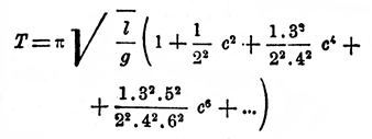 — М. называется тяжелое тело, совершающее колебания около неподвижной точки. Высокий интерес, представляемый движением М., замечен был впервые Галилеем, который усмотрел тесную связь между законами падения тел и законом качаний М. В 1657 г. Гюйгенс применил М. к устройству часов. М. оказался таким прекрасным средством в руках исследователей природы, что при помощи его было определено ускорение, производимое в движении падающих тел земным тяготением, величина сплюснутости земного шара у полюсов и, наконец, масса земного шара и всей солнечной системы. Математический М. состоит из тяжелой материальной точки и подвешенной к неподвижной точки О с помощью невесомого, нерастяжимого и несгибаемого стержня длины l. В положении равновесия стержень l принимает вертикальное направление. Если же отклонить М. в вертикальной плоскости от этого положения равновесия и затем предоставить действию тяжести, то он будет совершать качания в этой вертикальной плоскости. Формула, выражающая в конечном виде закон качаний М., содержит в себе эллиптические функции или может быть выражена следующим бесконечным рядом: