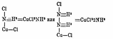 и пр. В других случаях вместо Сu фигурирует двухатомная группа Сu—Сu, одним своим сродством связанная с азотом. Наиболее естественным представляется третий взгляд на аммиачные соединения М., поддерживаемый проф. Менделеевым. Он видит в них соединения, подобные соединениям с кристаллизационной водой; они определяются теми же, еще малоисследованными силами. Это сходство нагляднейшим образом проявляется в том, что часто аммиак в таких соединениях замещается водой и обратно. Напр., пропуская через безводную CuSO 4 аммиак, получают CuSO 45NH3, аналогично CuSO 4 5Н 2 О; во влажном воздухе оно дает CuSO 4NH3H2O и CuSO 42NH33H2 O; известно также CuSO 4NH3H2 O и пр. Раcсмотрим некоторые из аммиачных соединений М. Для растворения безводной СuО в водном аммиаке требуется, по-видимому, присутствие аммиачных солей; гидрат же растворяется очень легко; полученному соединению приписывается состав CuO4NH 3 + вода. Подобное же соединение происходит при действии водного аммиака на М. в присутствии воздуха. Кислород воздуха частью окисляет М., частью окисляет NH 3 в азотистую кислоту, которая дает с избытком NH 3 азотисто-аммиачную соль. Реакция сопровождается значительным разогреванием. Аммиачный раствор окиси М. синего цвета. При действии на него М. без доступа воздуха он постепенно обесцвечивается; в растворе тогда предполагается существование соединения Cu 2O(NH3)4. Оно очень жадно поглощает кислород, окись углерода, ацетилен и во многих случаях действует как энергичный восстановитель. При действии аммиака на Cu 2 Сl 2, смотря по температуре, получаются соединения с 4, 2, 1 частицами аммиака. Эти вещества легко окисляются и присоединяют НСl соответственно в количестве 4, 2, 1 частицы. Для CuC 2 известны соединения с 6, 4, 2 частицами аммиака; для CuBr 2 c 5, 3 частицами; Сu 2J2 дает Сu 2J2 4NН 3; при действии аммиачного раствора окиси М. на спиртовой раствор йода в йодистом калии получаются соединения СuJ 2 4NН 3, СuJ 2 NН 3J2, СuJ 2 4NН 3J4 и пр. Для CuSO 4, кроме указанных, известны соединения с 2 частицами NH 3 и пр .