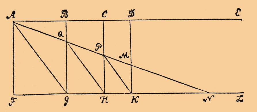 Тогда QG и РН и будут две средние пропорциональные между AF и КМ. Действительно из пропорций: