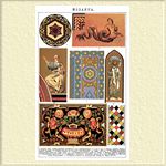 МОЗАИКА. 1. Средняя часть древнеримского мозаичного пола (приблизительно V в. по Р. Х.). 2. Древнеримская мозаика времен Империи. 3. Стенная мозаика в базилике Сан Клементе в Риме (XII ст.). 4. Стеклянно-мозаичная орнаментация одной из арок свода в константинопольском храме св. Софии. 5. Мозаика работы Сальвиати в Виндзорском замке (XIX ст.). 6. Мраморное мозаичное украшение алтаря в ц. Сан Доменико в Мессине (эпохи Возрождения). 7. Стеклянная мозаика в венецианском соборе св. Марка (XI ст.).