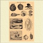 1) Морской гребешок (Pecten opercularis), одна створка снаружи, другая несколько выдающаяся из-под нее с внутренней стороны. 2) Pectunculus pilosus, сбоку. 3) Avicula semisagitta, одна створка снаружи, другая выдающаяся из-под нее с внутренней стороны. 4) Разевница (Муа truncata) сбоку, слева нога, справа длинная сифонная трубка. 5) Cytherea meretrix, одна створка снаружи, другая, выдающаяся из-под нее, — с внутренней стороны. 6) Лима (Lima squamosa), одна створка с наружной, другая с внутренней стороны. 7) Перловица жемчугоносная (Margaritana margaritifera); верхний экземпляр сбоку и несколько снизу, второй изображен зарывшимся в ил, кроме заднего конца, внизу раскрытия створки, на внутренней стороне одной из них приросшая жемчужина. 8) Беззубка (Anodonta), с брюшной стороны с врисованной нервной системой: а — рот, b — заднепроходное отверстие, с — жабры, d — нога, е — ротовые лопасти, f — половое отверстие, g — отверстие боянусова органа, h — головной узел, г — ножной узел, k — внутренностный узел, l — просвечивающие половые железы. 9) Сердцевидка съедобная (Cardium edule); вверху раковина с замочной (верхней) стороны; внизу и слева животное, выставившее из раковины ногу (справа) и края мантии с сифонами (слева), внизу справа створка раковины с внутренней стороны. 10) Створка Spondylus princeps с внутренней стороны; ясно видно место прикрепления мускула, смыкающего створки. 1 1) Donax anatinus с выставленной из раковины ногой (внизу), сифонами (вверху) и краем мантии. Все рисунки — пластинчатожаберные моллюски (Leimellibranchiata).