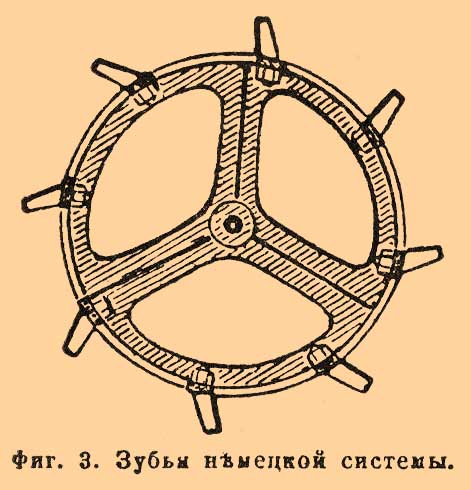 Фиг. 2. Глухой барабан с зубьями русской системы.