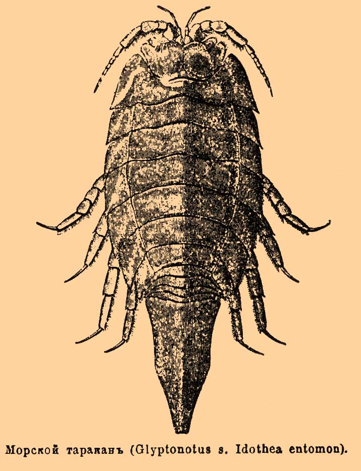 На севере достигает 10 стм.; водится в Балтийском море, Белом и Ледовитом океане, а также в некоторых больших озерах Скандинавии и России (напр. Ладожском). В морях этот вид держится в более или менее опресненных частях. Озерных М. тараканов некоторые считают за остаточные формы (т. е. формы, уцелевшие в фауне озера с тех пор, когда оно составляло еще часть моря); по другим — эти животные просто проникли в озера из моря, применившись постепенно в устьях рек к пресной воде. Факт нахождения этого вида в Балтийском и Белом морях и Ладожском оз. (вместе с другими аналогичными фактами) истолковывается некоторыми в пользу гипотезы Ловела, по которой Белое море было непосредственно соединено с Балтийским. К роду Idothea с узким телом, свободной головой, глазами на боковых краях головы и нехватательными первыми тремя парами ног, заключающему многочисленные виды, относится широко распространенная по берегам Европы и Атлантическому берегу Сев. Америки I. tricuspidata ("Schaffworm" балтийских рыбаков). Длина 2,5—3,3 стм., цвет чрезвычайно разнообразен и, соответствуя цвету окружающих предметов, служит животному средством для защиты от врагов.