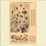 II. 1—4. муха-жужжелица (Calliphora vomitoria), 1 — муха, 2 — яички 3 — личинки. 4 — куколка: 6 — мясная муха (Sarcophara carnaria). 5 — ее молодые (новорожденные) личинки, 7 — ее взрослые личинки; 8 — комнатная муха (Musca domestica). с личинкой; 9 — жигалка (Stomoxys calcitrans); 10 — голова комнатной мухи, 11 — последний членик лапки мясной мух; 12 — комнатная муха, умершая от паразитного грибка Emphusa muscae. 10 и 11 — увеличены, остальные несколько уменьшены.