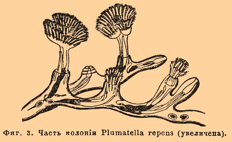 Фиг. 3. Часть колонии Plumatella repens (увеличена).