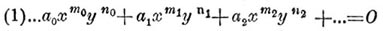 — Способ Н. и наименьших показателей был предложен Ньютоном для разложения переменного у в ряд по убывающим или по возрастающим степеням переменного х в тех случаях, когда х и у связаны уравнением вида f(x,y) = 0. Способ этот, называемый также параллелограммом Ньютона, может иметь широкое применение к теории алгебраических функций, к исследованию особых точек кривых, к теории дифференциальных уравнений и так далее. Пусть данное уравнение будет:
