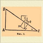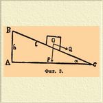 Если по этой формуле величина M выйдет отрицательной, то абсолютная величина этого отрицательного количества представит собою силу, потребную для удержания груза на месте так, чтобы он не скользил вниз по плоскости. Применим эти формулы к следующему примеру. Нужно втащить деревянный ящик в 10 пудов весом по деревянной доске, составляющей с горизонтальным направлением угол в 30°; sin 30° = 1/2 и cos 30° составляет около 0,87. Коэффициент tgφ трения дерева по дереву равен 1/2. Вставляя эти величины в формулу (2), получим величину сил S = 9,35 пуда. Для того чтобы определить силу M, потребную для удержания ящика от сползания с этой Н. плоскости, нужно вставить те же величины в формулу (3). Получим М = —0,65 пуда = —26 фунтов. Такая значительная разница между S и М станет понятной, если заметим, что для передвижения ящика по горизонтальной доске требуется сила, вычисляемая по формуле (1) при α = 0 и равная 5 пудам, между тем как для удержания ящика на горизонтальной доске не требуется никакой силы. В истории механики Н. плоскость играла весьма видную роль. Один из крупнейших шагов в этой науке сделан был Ньютоном, когда он открыл всемирное тяготение; этому открытию предшествовало предварительное изучение, еще Галилеем, законов падения тел, для чего он пользовался Н. плоскостью. Изменяя наклон α плоскости, можно заставлять падать (катиться) по ней одно и то же тело под действием различных сил Q, и при этом при малых α тело падает достаточно медленно, чтобы можно было за ним следить. Галилей и применял к изучению падения именно Н. плоскость, но он же изучал законы колебания маятника, служащего лучшим орудием для изучения законов тяготения. Н. плоскость употребляется также для изучения законов трения (см. Трение).