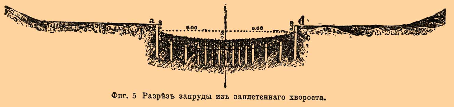 Фиг. 5. Разрез запруды из заплетенного хвороста.