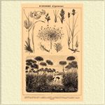 1. Eriophorum latifolium Hoppe; a — соцветие, b — плодик с длинными волосками. 2. Cyperus Papyrus L.; a — соцветие, b — группа колосков, с — отдельный колосок. 3. Carex arenaria L.; a — соцветие, b — мужской, с — женский цветок.