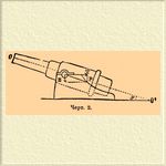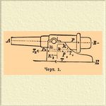 Скорость О., общую для орудия и лафета, получим, приложив к движению системы (снаряд, орудие и лафет) закон сохранения движения центра тяжести. Сила (С), производящая О. — внутренняя по отношению к системе, потому приобретенное количество движения системы = 0, т. е.: mV — (Mo + M л )W = 0. (1), также mk — (Mo + M л )n = 0. (2), где m, Mo, M л соответственно массы снаряда, орудия и лафета (массой заряда пренебрегаем); V и W — начальные скорости снаряда и О., k и n — пути, проходимые снарядом по каналу, а орудием с лафетом по местности в то же время. Из (1) следует: W = mV/(Mo + M л ) — скорость О., отсюда живая сила лафета Ж = Мл W2/2 = (Мл /2) m2V2/(Mo + M л )2, последняя должна равняться произведению cилы С на путь п, Сп = (Мл /2) m2V2/(Mo + M л )2, и C = (l/n)(Мл /2) m2V2/(Mo + M л )2 = m2V2/2. 1/(1 + Мо / Мл) · 1/k (подставив из (2) n = mk/( Мо + Мл)). Таким образом, действие силы, производящей О., уменьшается с уменьшением живой силы снаряда (его веса и скорости), с увеличением массы или веса орудия и с уменьшением веса лафета. О. в большинстве случаев стараются уменьшить, если не совершенно устранить, потому что он замедляет стрельбу, утомляет орудийную прислугу, в полевой артиллерии в особенности, требует лишнего места; с другой стороны, в смысле сохранения прочности лафета, желателен больший О., потому что живая сила отдачи частью тратится на О., частью поглощается самим лафетом, производя в последнем различные деформации; чем короче О., тем больше деформируется, страдает лафет. В легких и батарейных лафетах О. ограничивается стальным сошником (оковка хобота), врывающимся в землю при движении лафета. В последнее время испытывается полевой лафет с самонакатыванием — длина отката не превосходит нескольких дюймов. В горных лафетах, кроме сошника для уменьшения отката, употребляют канатный тормоз, закладываемый серединой за крючья станин, а петлями на концах надеваемый на крючья у ступиц колеса; при О. тормоз наматывается на ступицы, затормаживает колеса и прекращает O. В крепостной и осадной артиллерии почти во всех случаях О. нежелателен и допущен настолько, чтобы лафет не испытывал слишком большого разрушительного действия. Для уменьшения О. увеличивают сопротивления, встречаемые лафетом при движении, что достигается различными средствами: 1) посыпают платформы песком, следов. увеличивают трение между лафетом и платформой, 2) устанавливают за колесами лафета откатные клинья (деревянные или железные, черт. 3; вид сбоку и сзади), на которые взбегают при О. колеса, хобот же скользит по платформе.